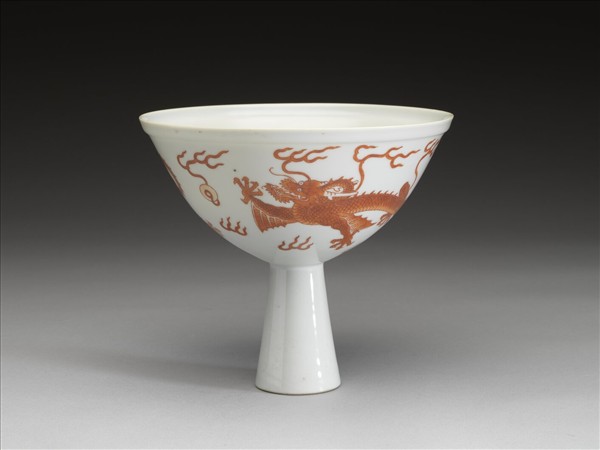 描紅龍紋高足碗