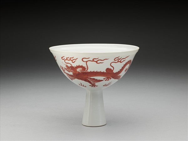 描紅龍紋高足碗