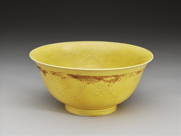嬌黃釉雲龍紋碗
