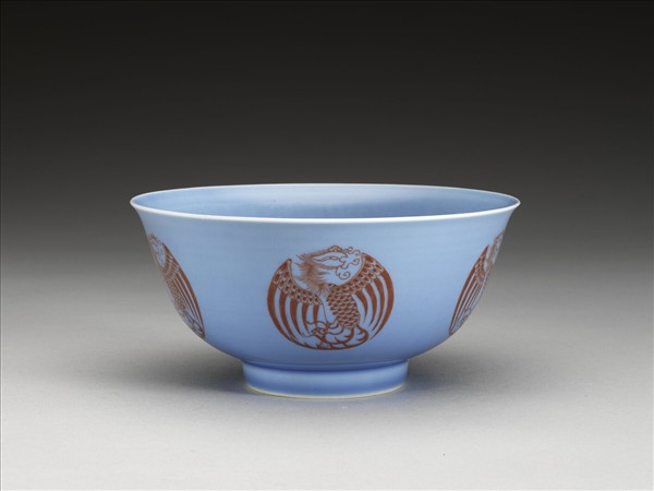 冬青釉裡紅團鳳紋碗