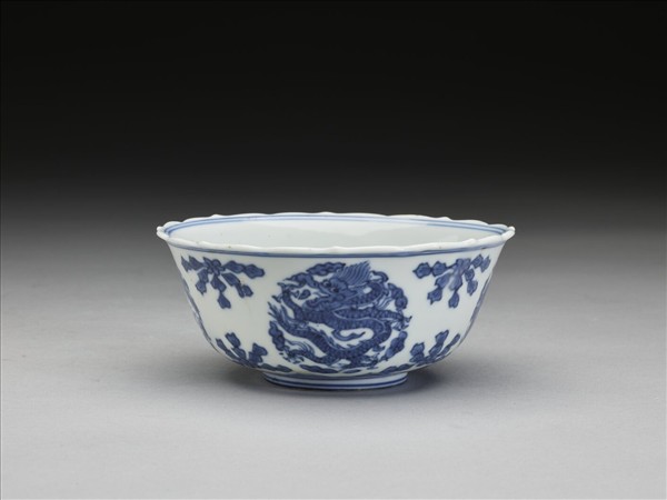青花團龍紋菱花茶鍾
