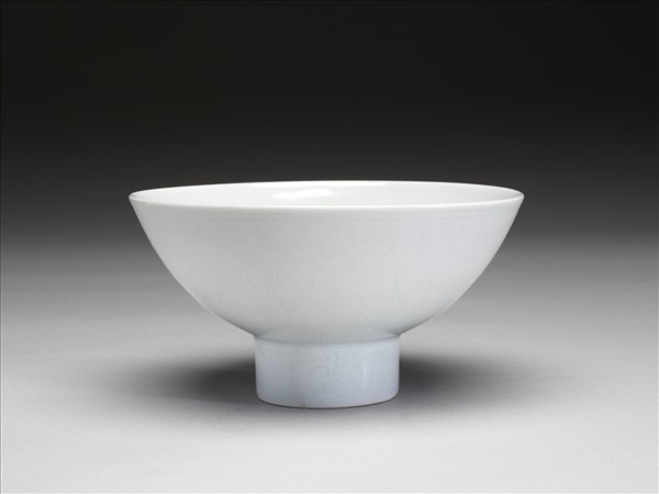 甜白釉纏枝花卉紋高足碗