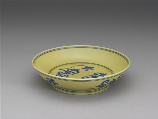黃釉青花花卉紋盤