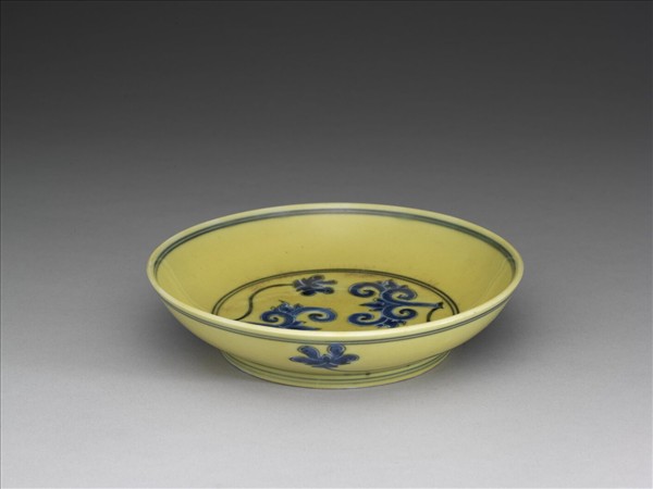 黃釉青花花卉紋盤