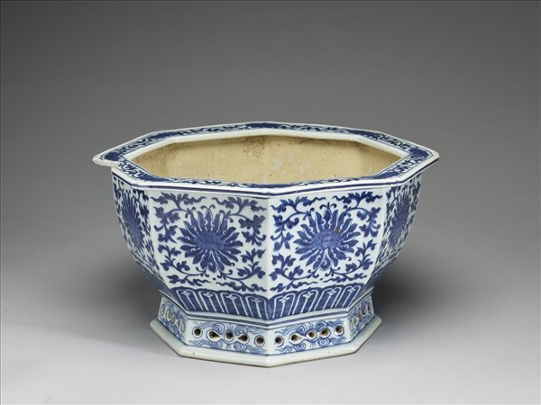 青花番蓮紋八方花盆
