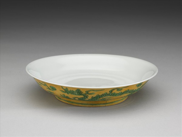 嬌黃釉綠彩雙龍紋盤