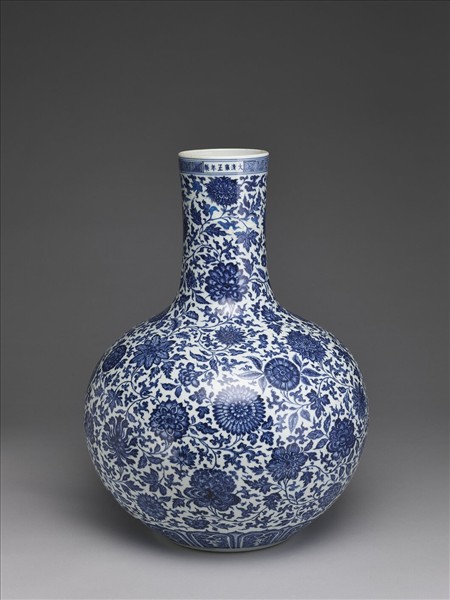 青花四季花卉紋天球瓶