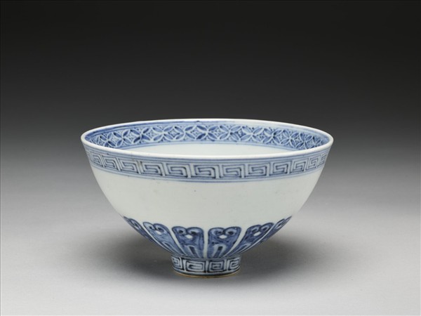 青花幾何花卉紋蓮子碗
