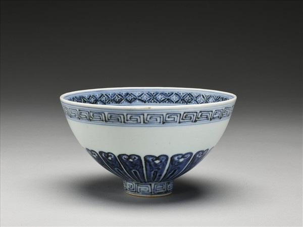 青花幾何花卉紋蓮子碗