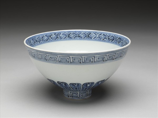 青花幾何花卉紋蓮子碗