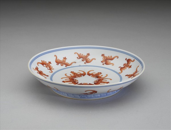 青花紅彩蝙蝠紋盤