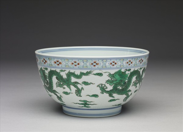白瓷綠彩五龍紋碗