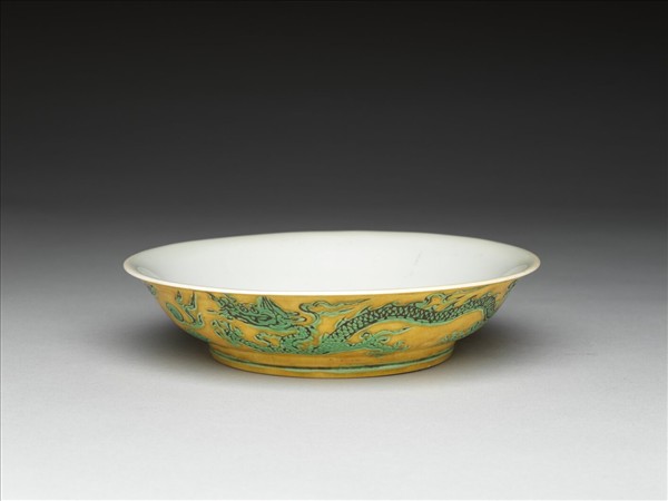 嬌黃釉綠彩雙龍紋碟