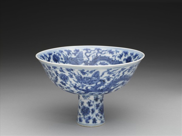 青花番蓮五龍紋高足碗