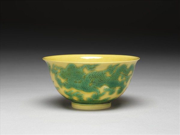 嬌黃釉綠彩龍紋碗