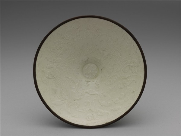 定窯 白瓷印花雙鳳銜花紋笠式碗