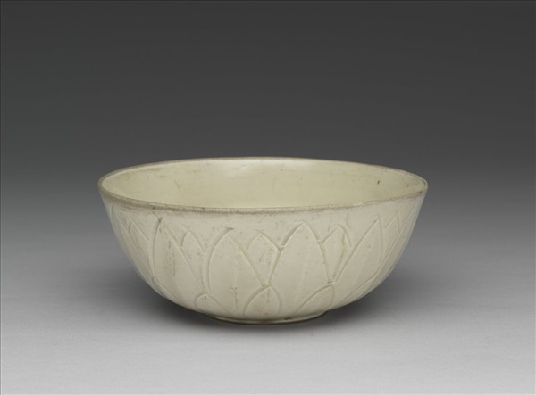 定窯 白瓷劃花蓮瓣雙魚紋碗