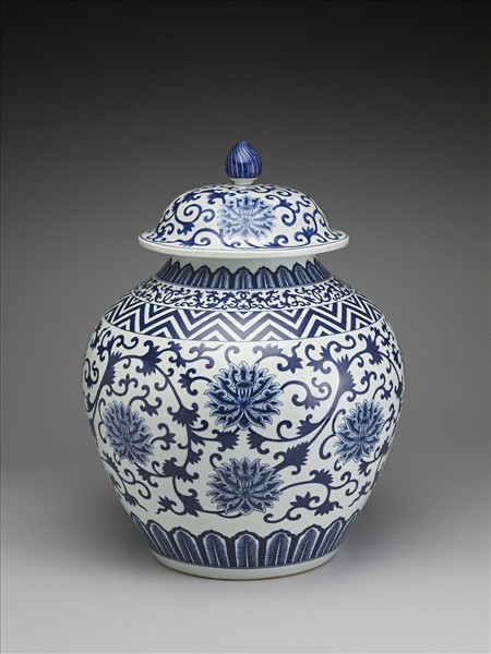 青花番蓮紋蓋罐