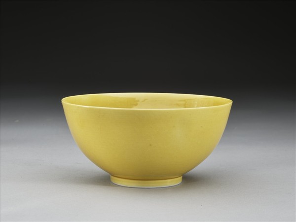 斂口,深壁,尖底,矮圈足。全器內外壁均施黃釉,釉色濃艷明亮。足圈露胎,圈足內底施白釉,並書「大清道光年製」篆款。