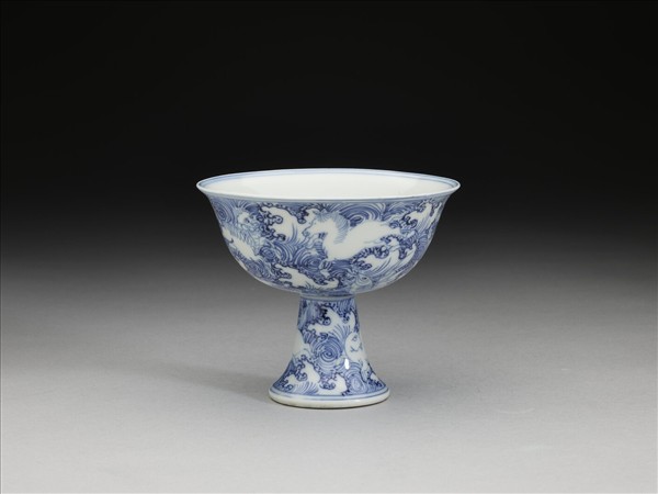 青花海獸紋高足杯