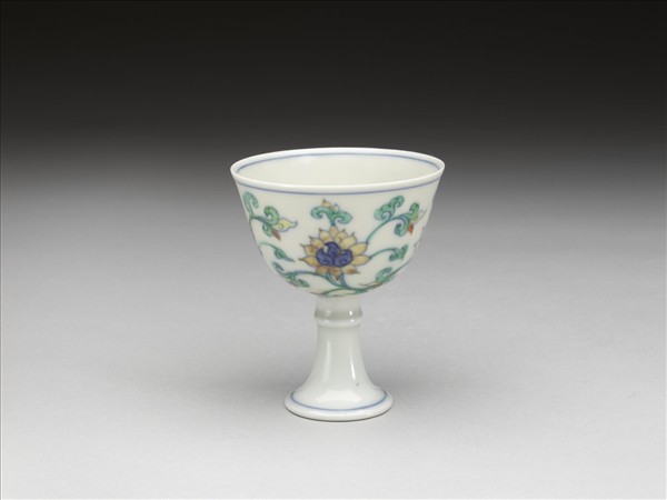 鬥彩轉枝蓮紋高足杯