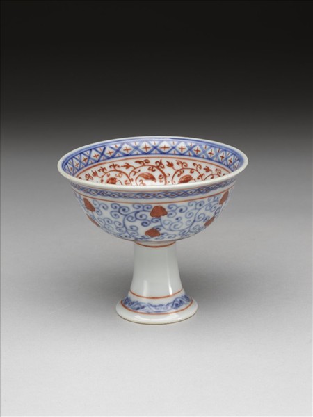 青花描紅花卉紋高足杯
