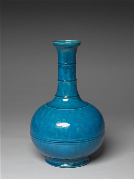 孔雀綠釉弦紋瓶