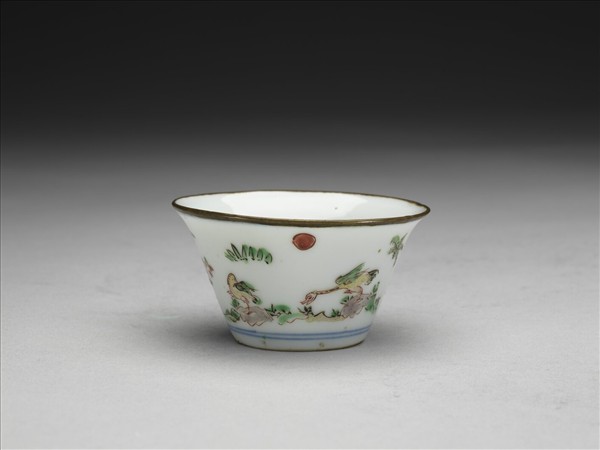 五彩花卉紋銅口套杯