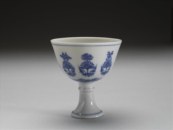 青花番蓮托八寶紋高足杯