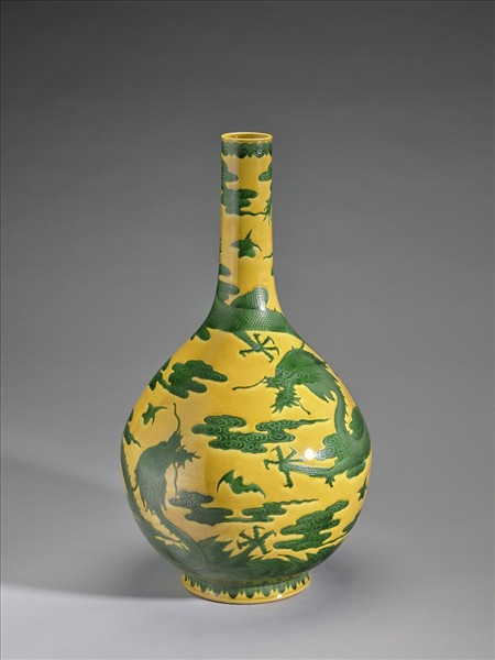 黃地綠彩雲龍紋瓶