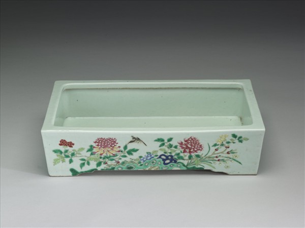 粉彩花卉紋長方盆