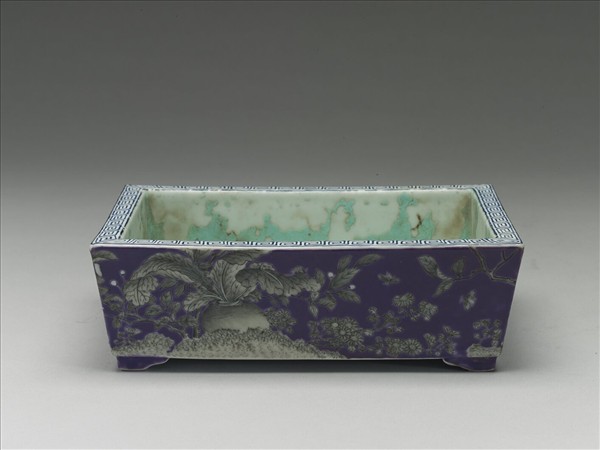 「大雅齋」款紫地墨花卉紋長方盆