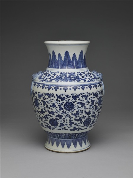 青花花卉紋獸耳銜環壺