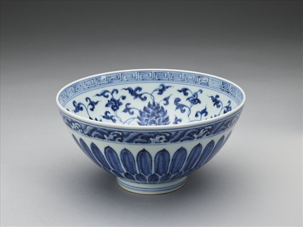 青花蓮瓣花卉紋蓮子碗
