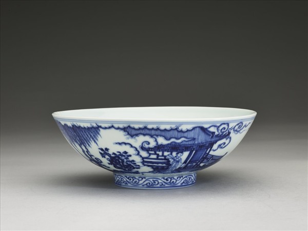 青花海棠詩意圖碗