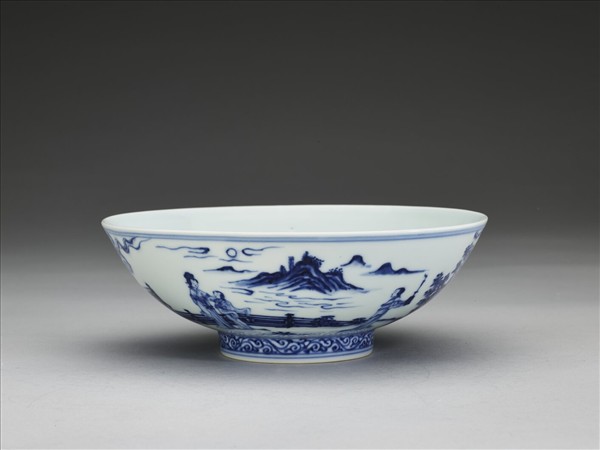 青花海棠詩意圖碗