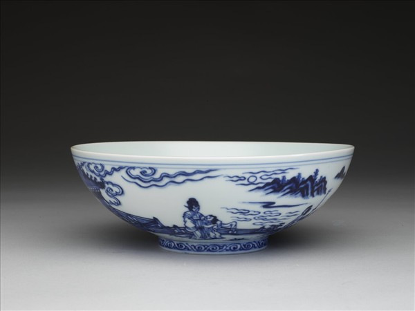 青花海棠詩意圖碗