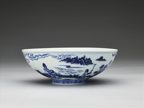 青花海棠詩意圖碗