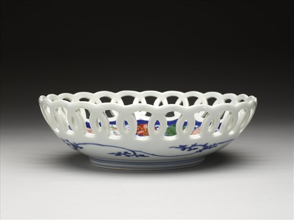 日本 有田窯 青花五彩鳳凰紋鏤空盤