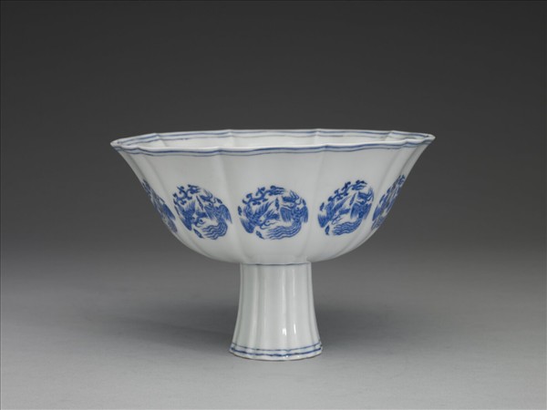 青花團鳳紋高足碗