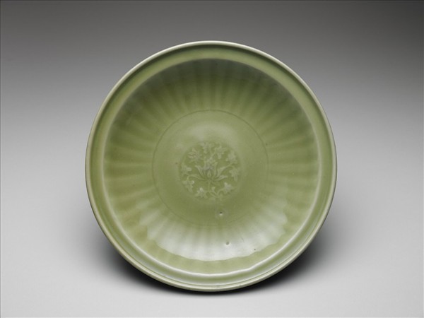 龍泉窯 青瓷印花番蓮紋折沿盤
