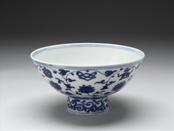 青花番蓮八寶紋高足碗