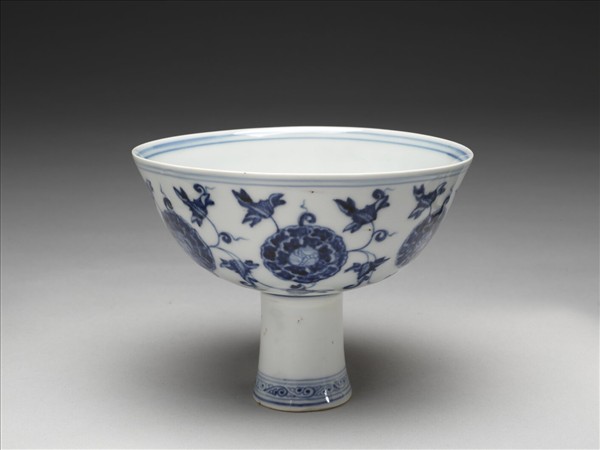 青花團花紋高足碗