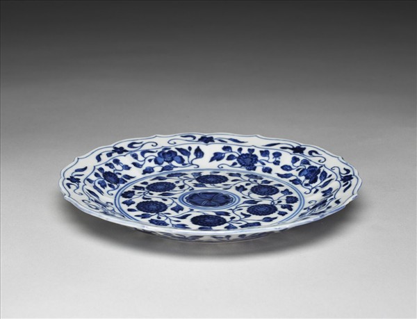 青花四季花卉紋花口盤