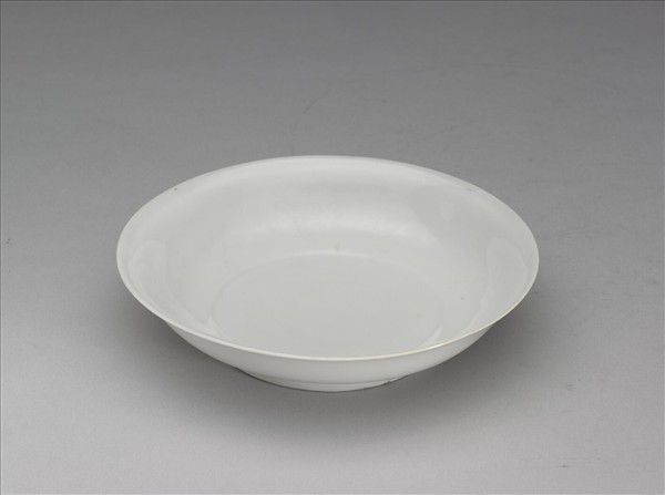 碟子的口部略外侈、淺壁、矮圈足。胎質細膩潔白,一件胎體極薄,一件略厚。通體施潔白溫潤的白釉,只在足底著地處露胎,胎質細膩潔白。器身內壁錐拱雲龍紋二條,內底淺刻劃三朵祥雲,雲帶長雲腳,呈品字形排列。南京玉帶河明故宮遺址出土有明代洪武時期的白釉紅彩品字雲龍紋及青花品字雲龍紋盤破片,江西景德鎮珠山遺址也曾發現以雙龍品字雲紋裝飾的顏色釉瓷器,可以看到來自洪武時期的傳承。