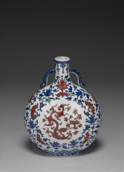 青花釉裡紅夔龍紋扁壺