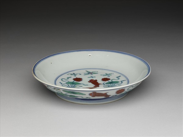 鬥彩蓮塘魚藻紋盤