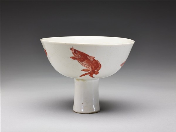 描紅四魚紋高足碗