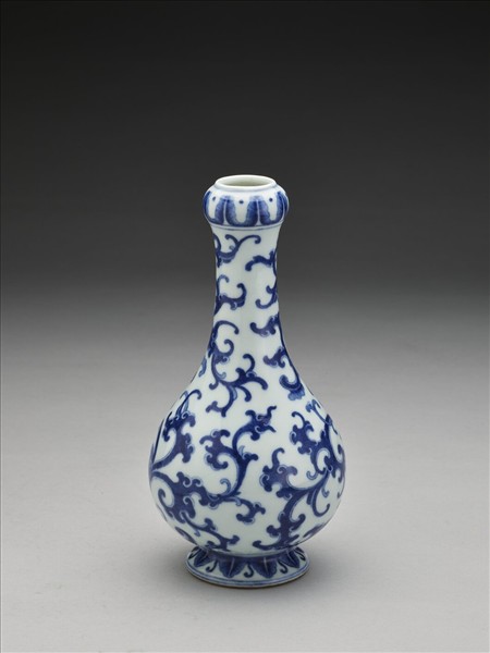 青花靈芝紋蒜頭瓶