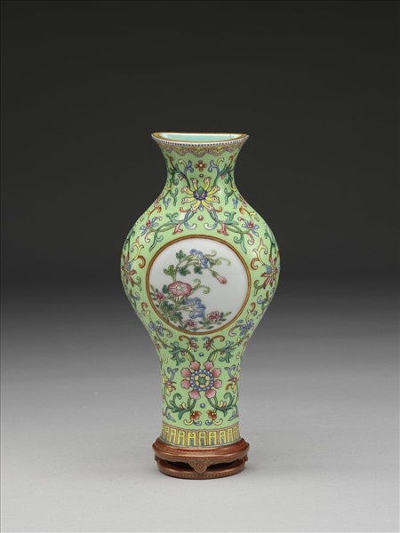湖綠地粉彩開光花卉紋轎瓶